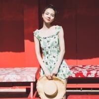 どんぐりと緑の葉柄がキュートで個性的♡♥ストラップショルダーのワンピース水着☺☆♪ CGRI000020