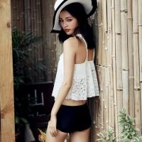 レースで体をカバーしてくれる♪ホルターネックのリボンもかわいい♡セットアップ水着 CGAM000072