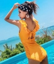 ふわふわフリルとサイドのシャーリングがポイント♪♬ハイウエスト切替えワンピース水着♡ CGTA000002