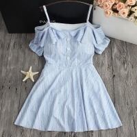 細見え効果◎爽やかブルーのオフショルダーワンピース CGMK000042