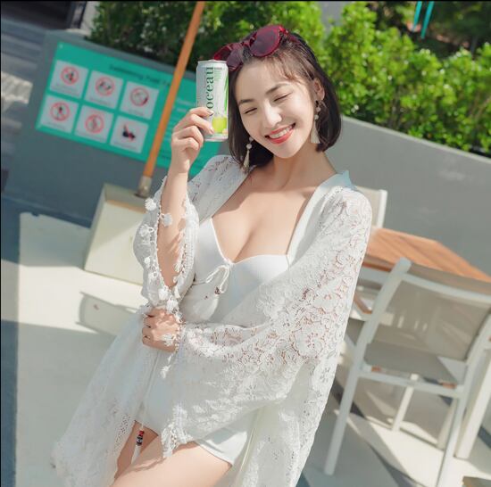 大人の女性にぴったりの今年大注目のトレンドアイテム♥♡バックリボンが可愛いレースカーディガン付きワンピース水着☺︎♬ CHERGOI000226