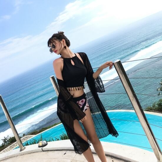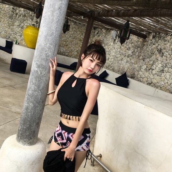 ハイネックブラでバストラインを綺麗に♪フリンジで色っぽいシックな黒ビキニ☺︎♡ CGOI000013