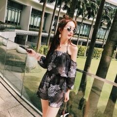 トレンドのボタニカル柄がビーチに映える♡♥オフショルのサロペット付きスリーピース水着☆☺★ CGRI000015