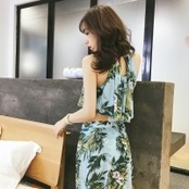 淡いブルーにボタニカル柄が華やかでトレンド感満載☺