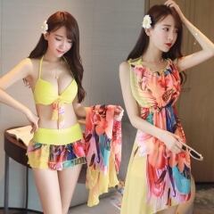ビタミンカラー!カラフルなお花がかわいい♡ワンピースもついた3点セットビキニ♥ CGAM000046