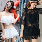 嬉しい体型カバースイムウエア♥♡レースがかわいい ブラとショーツとトップスの3点セット水着♪♬ CGKM000032
