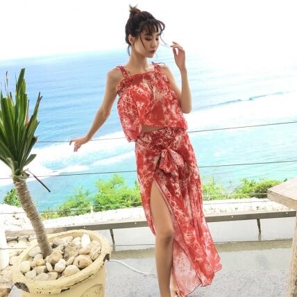 ビーチに映える♪明るい色のロングスカートセットのビキニ♥ CGAM000074