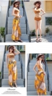 エスニック柄のパレオがおしゃれ♡トップのデザインも凝った水着3点セット♪ CGAH000039