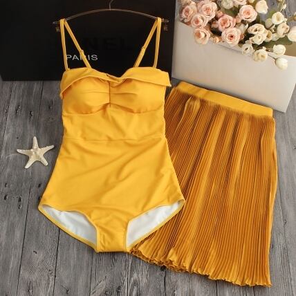 はじけるイエローカラー!モノキニとプリーツスカートの2点セット♪ CGAM000120