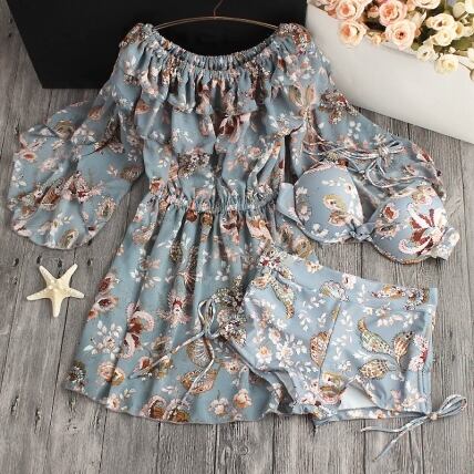 落ち着いた色合いで大人っぽい♡♡ビキニとワンピースの三点SET♫ CGYK000115