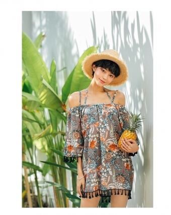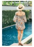 フリンジ使いがおしゃれなオフショルチュニック♡ビキニのフリルもキュートな水着セット♪ CGAH000078