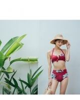 暗めのレッドが大人っぽい♡オールインワンタイプのシャツが珍しい水着セット♪ CGAH000080