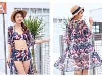 ビーチに映えるトロピカルリーフ柄♡ホルターネックビキニ3点SET♫ CGYK000107