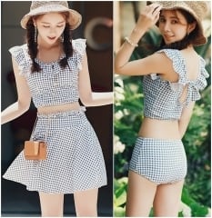 ギンガムチェックが人目を惹く♡♥フリルが可愛い3点セット水着☆☺♪ CGRI000023