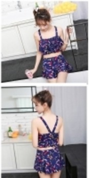 イラストプリント柄がかわいい♡ミニスカ風ビキニ水着♪トップの2段フレアデザインで、バストアップ効果も♡ CGAH000026