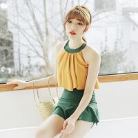 イエローとグリーンがマッチするバイカラー水着♥