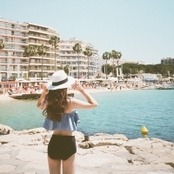 薄手のボーダーワンピースで、水着が少し透けているのがセクシー♡