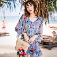 揺れるフリルがフェミニン♥♡トロピカル柄が可愛いカバーアップ付きビキニ3点セット♪♬ CGKM000122