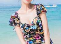 3サイズ カラフル 色鮮やか デコルテ ワンピース水着 半袖 フレアスカート ミニ 個性的 一体型 CGCH000345