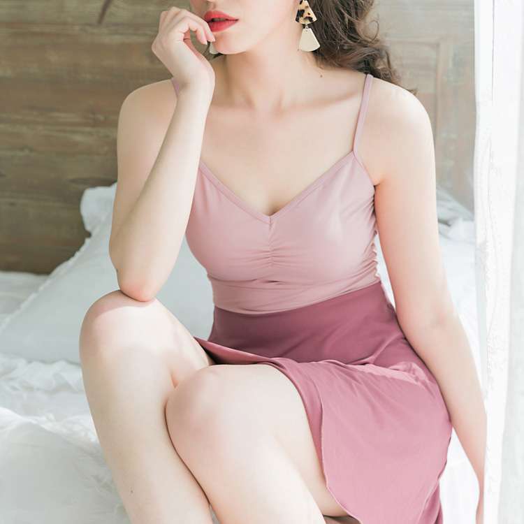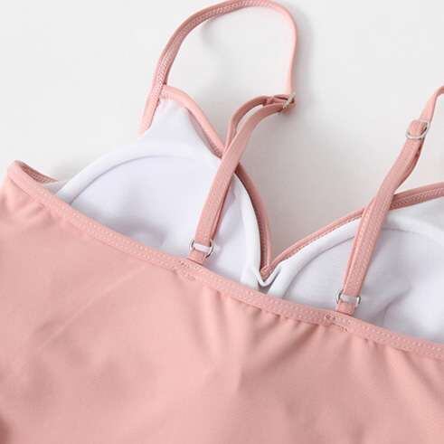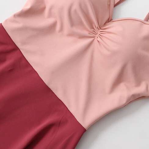 バイカラー ワンピース水着 / レディース 大人かわいい フェミニン ストラップ ピンク M / L / XL CGKM000273