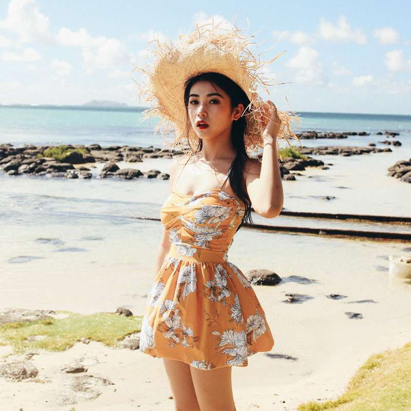 ボタニカル柄 ワンピース水着 / レディース 大人かわいい 花柄 ストラップ フレアスカート M / L / XL CGKM000275