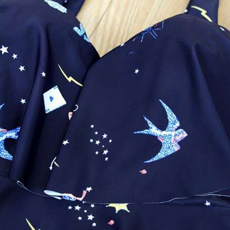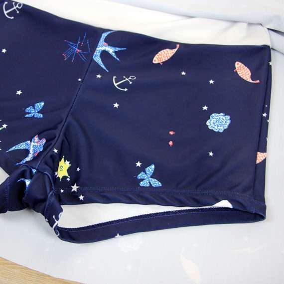バード柄 ワンピース水着 / レディース 体型カバー フレアスカート ショートパンツ一体型 フレア マリン M / L / XL CGKM000283
