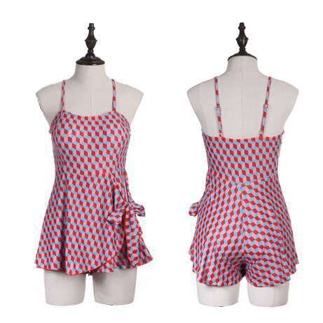 モダンなスクエア柄がキュートな巻きスカートワンピース水着。