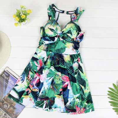 リゾート 水着 ワンピース リーフ柄 個性的 大人っぽい キュート 可愛い 体系カバー ミニスカート ショートパンツ CGAH000276