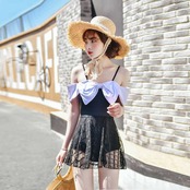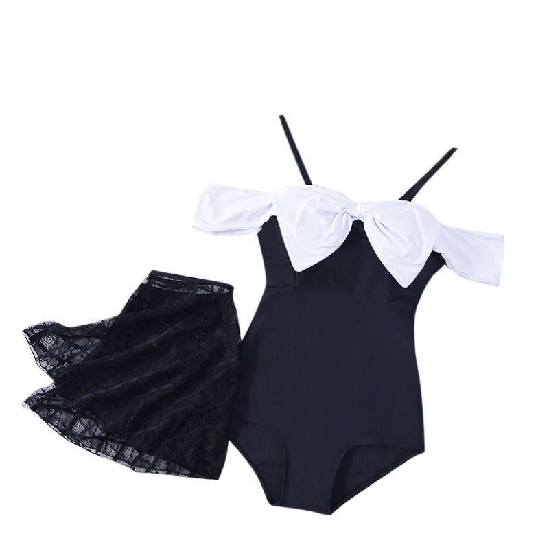 ワンピース 水着 リボン モノクロ ブラック ホワイト スカート レース CGAM000256