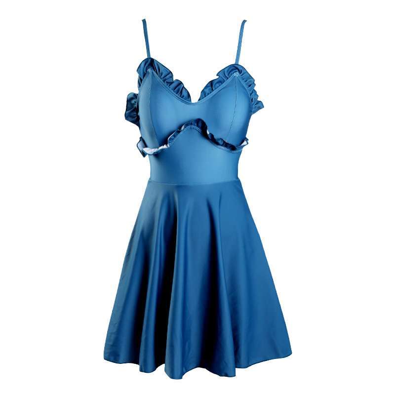 ワンピース 水着 ストラップ スカート フリル 胸フリル ハイウエスト ブルー 青 CGAM000259
