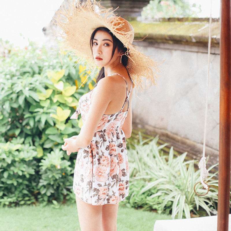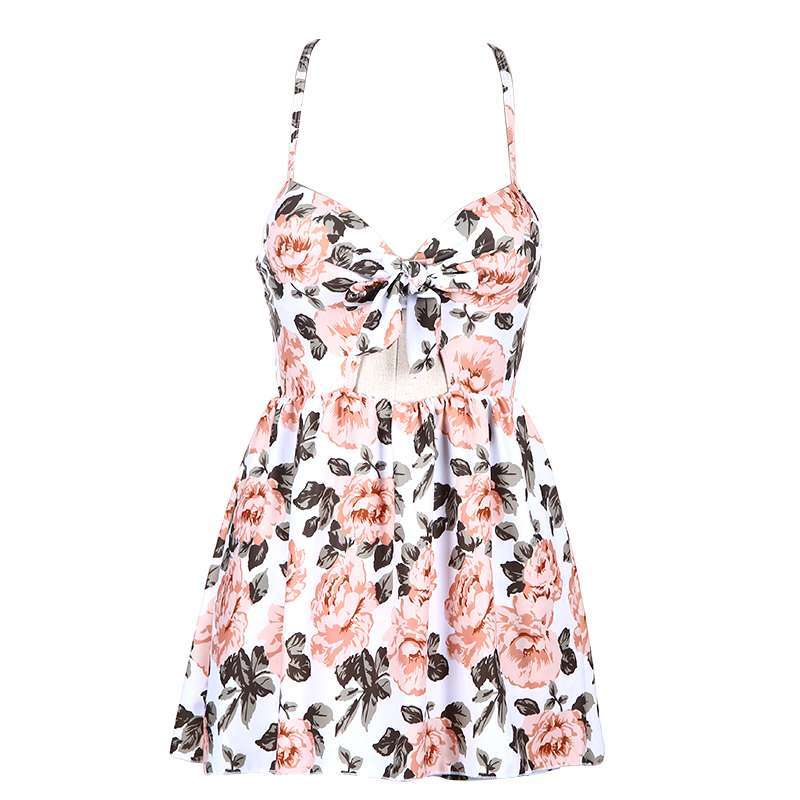 ワンピース 水着 花柄 フラワー柄 スカート ハイウエスト チラ見せ 肌 リボン CGAM000298