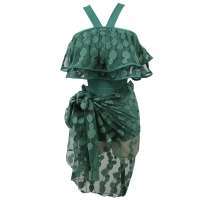 パレオ付きフレアワンピース水着 / レディース フレアトップ シースルー レース スイムウエア 2点セット M / L / XL / XXL CGKM000216