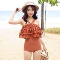 ボリューム感たっぷりの胸元のフレアが可愛いパレオ付きのワンピース水着。