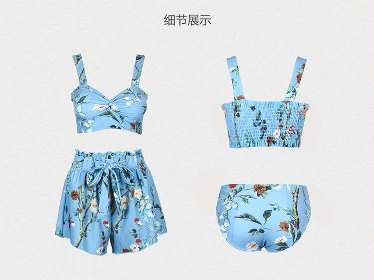 水着 3点セット 花柄 ボタニカル柄 ブルー 大人可愛い 水着 ビキニ バンドゥ風 ビスチェ風 夏 ハイウエスト CGCH000360