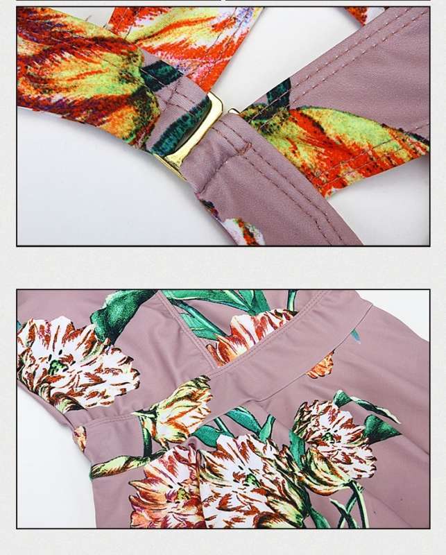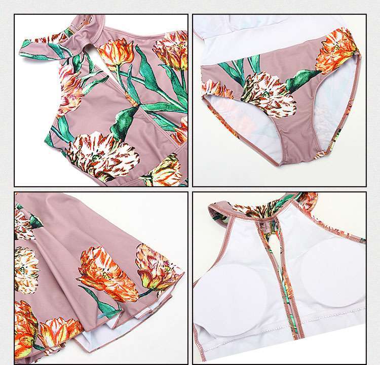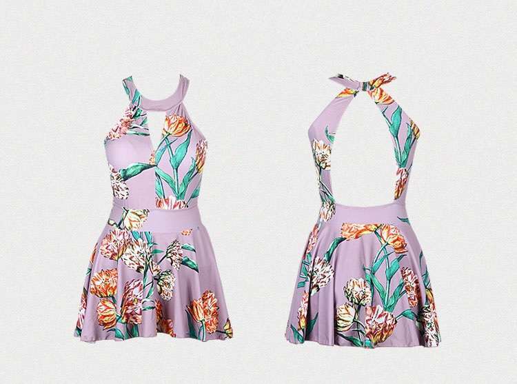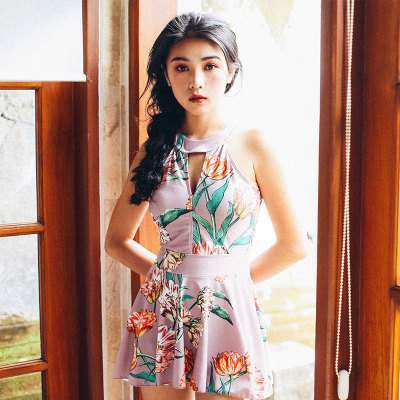 水着 ワンピース ホルターネック 個性的 花柄 大人っぽい 上品 フレア ミニ丈 スカート CGAH000270