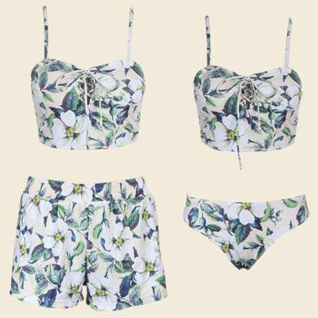ボタニカル柄 レースアップビスチェビキニ / レディース セクシー 大人かわいい 体型カバー ショートパンツ 花柄 M / L / XL CGKM000284