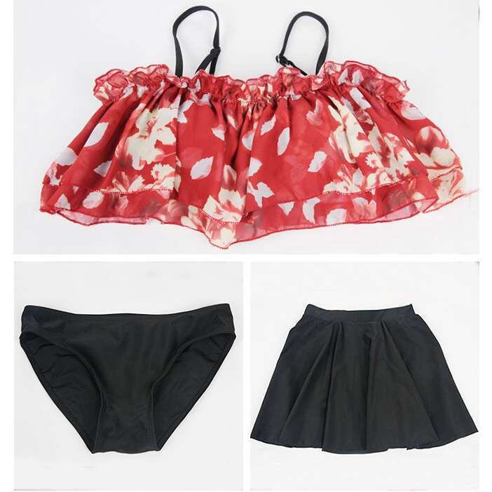花柄オフショルビキニ+スカートの2点セット / レディース セクシー フェミニン ボタニカル ギャザー フレアスカート M / L / XL CGKM000280