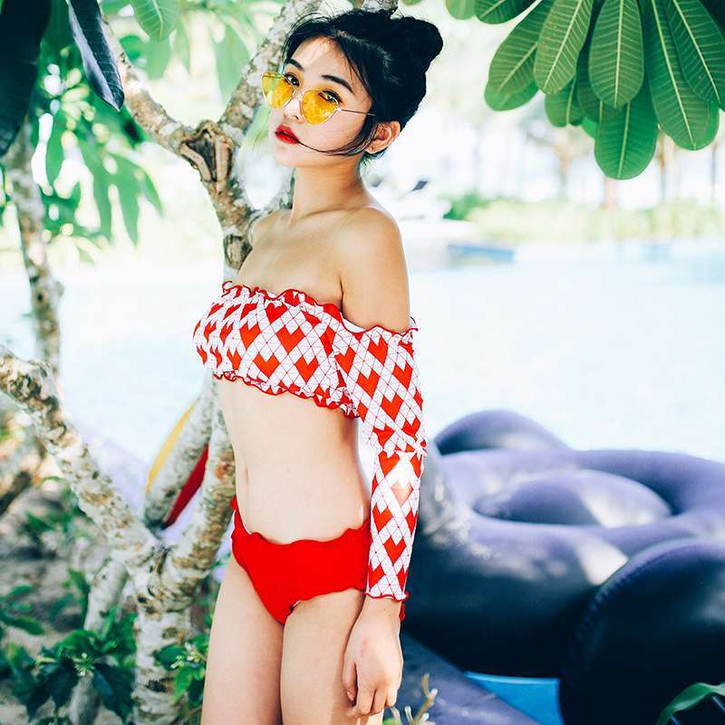 セクシー 個性的 ハート柄 長袖 水着 2ピース フリル オフショル CGYK000266