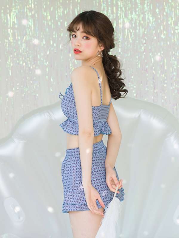 ふんわりしたカラーが女性らしいタンキニ水着♡