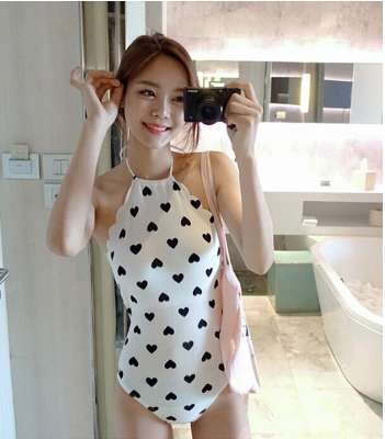 ハイネック 水着 モノキニ ワンピース ハート柄 夏 バックリボン ホルターネック セクシー 大人っぽい CGCH000361