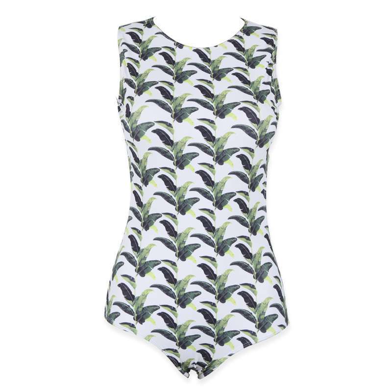 ボタニカル柄 モノキニ 水着 レトロ リーフ柄 背中 セクシー ママ水着 緑 グリーン CGAM000271