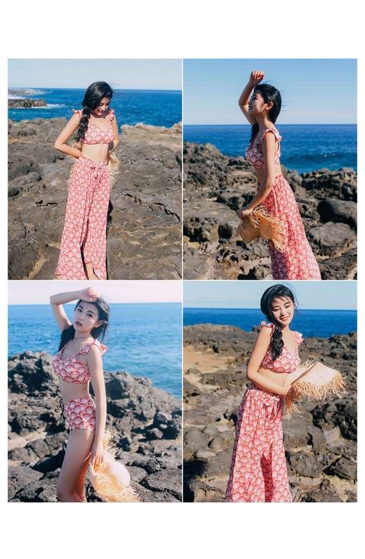 個性的 大人柄 水着 3点セット レトロ風 体型カバー 水着 大きいサイズ バックシャン 夏 パンツ CGCH000398