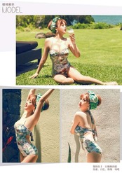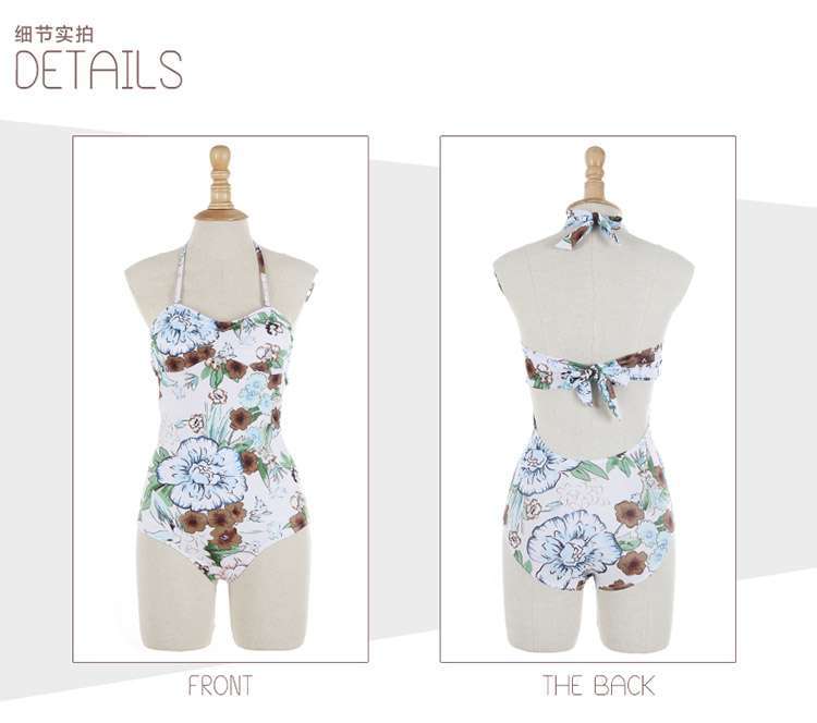 レトロ 水着 ワンピース ヴィンテージ バックシャン ホルターネック 花柄 夏 パッド入り 大きいサイズ CGCH000424