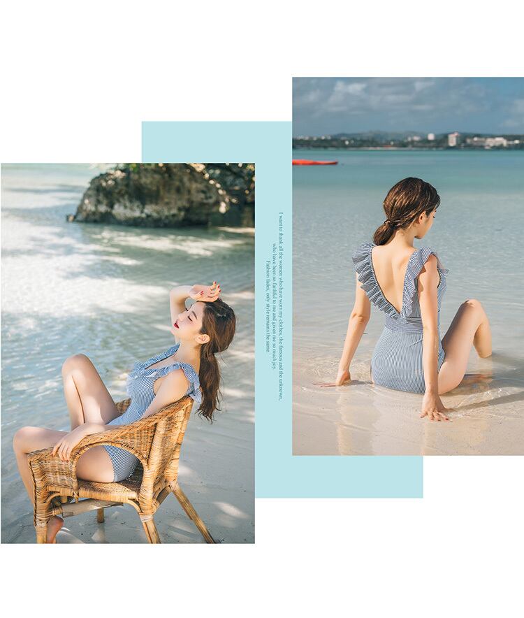 甘めフリルとさわやかストライプ♥♡バックオープンが魅力的なワンピース水着☺︎★ CGAH000476
