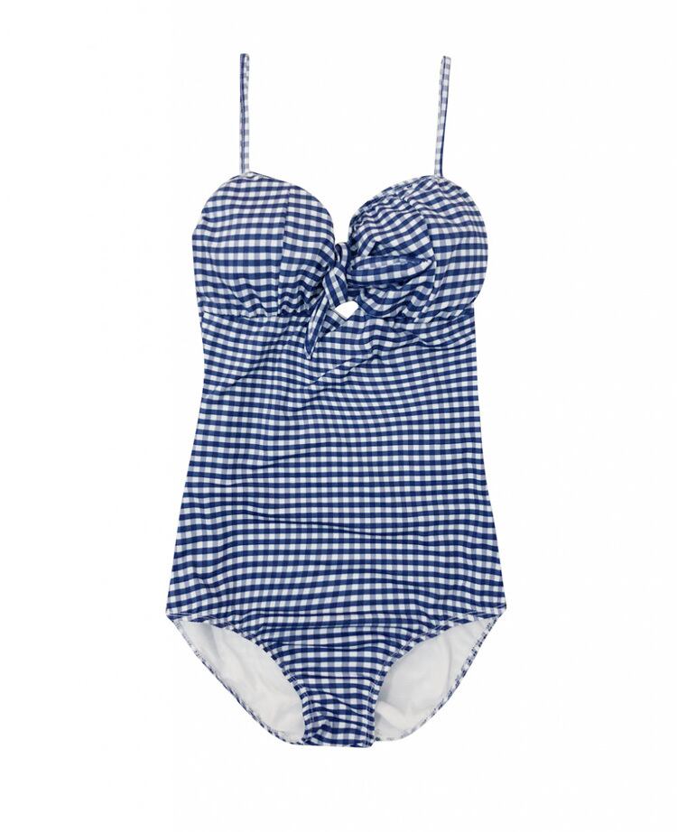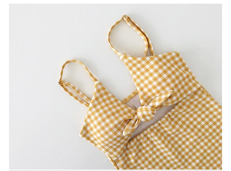 ギンガムチェック 新作水着 ワンピース水着 レトロ 可愛い チェック柄 可愛い 青 ブルー 水色 イエローリボン CGAH000482