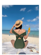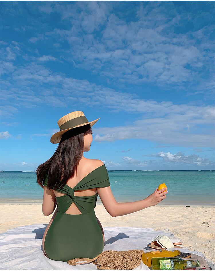 クロスショルダー オフショルダー 大人っぽい 水着 レトロ 可愛い 個性的 新作水着 大人可愛い グリーン カーキ セクシー CGAH000487