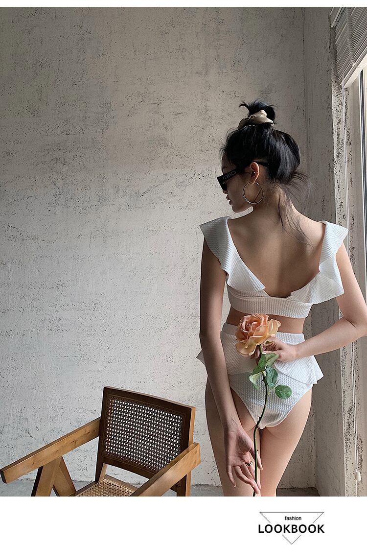 フリル水着 編み レトロ 可愛い 個性的 新作水着 大人可愛い 大人っぽい ホワイト セクシー CGAH000491