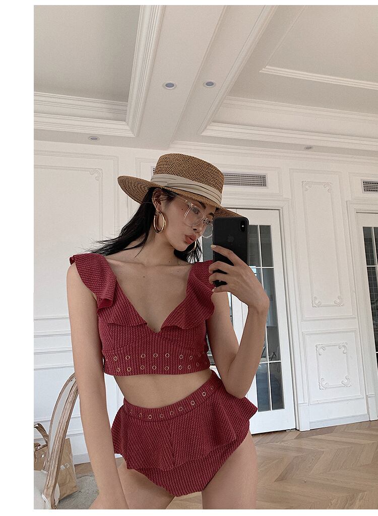 フリル かわいい 水着 個性的 新作水着 Vネック 大人可愛い キュート ホワイト 白 赤 CGAH000539