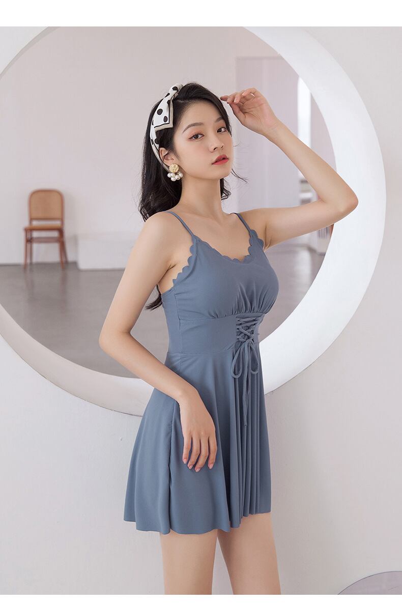 新作 ブルー 水着 スカート 編み上げ シック キュート レトロ かわいい カジュアル ワンピース セクシー 個性的 大人っぽい リゾート 体型カバー 大人かわいい トレンド レトロ 新作水着 大人可愛い キュート ママ 大きいサイズ ビーチウェア CGAH000795