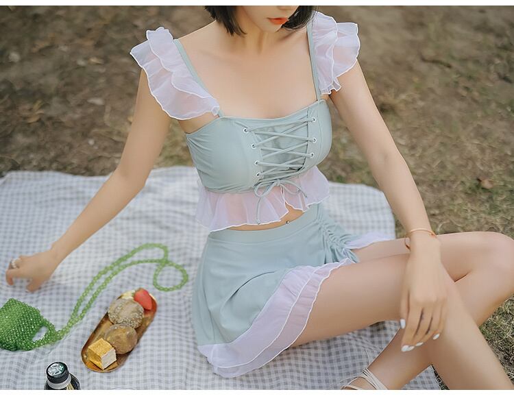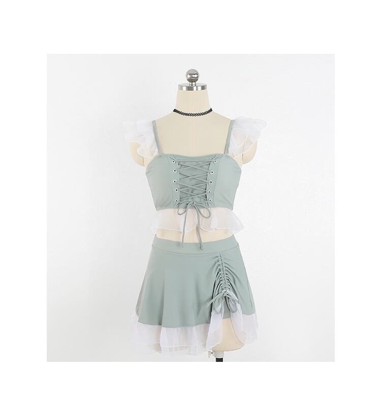 フリルと編み上げがかわいいセパレート水着。